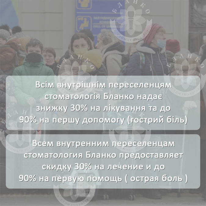 ✅🤝 Всем внутренним переселенцам стоматология Бланко предоставляет скидку 30% на лечение и до 90% на первую помощь ( острая боль )