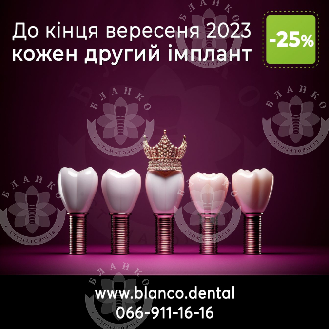 Предложение -> до конца сентября 2023 г. при установке более одного импланта - на каждый второй скидка -25%