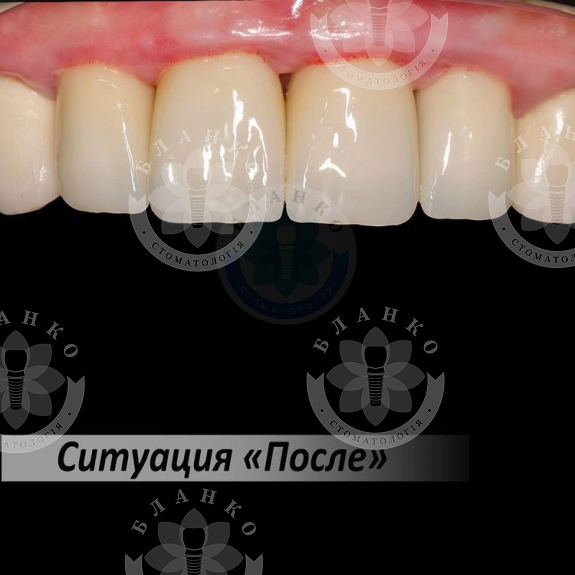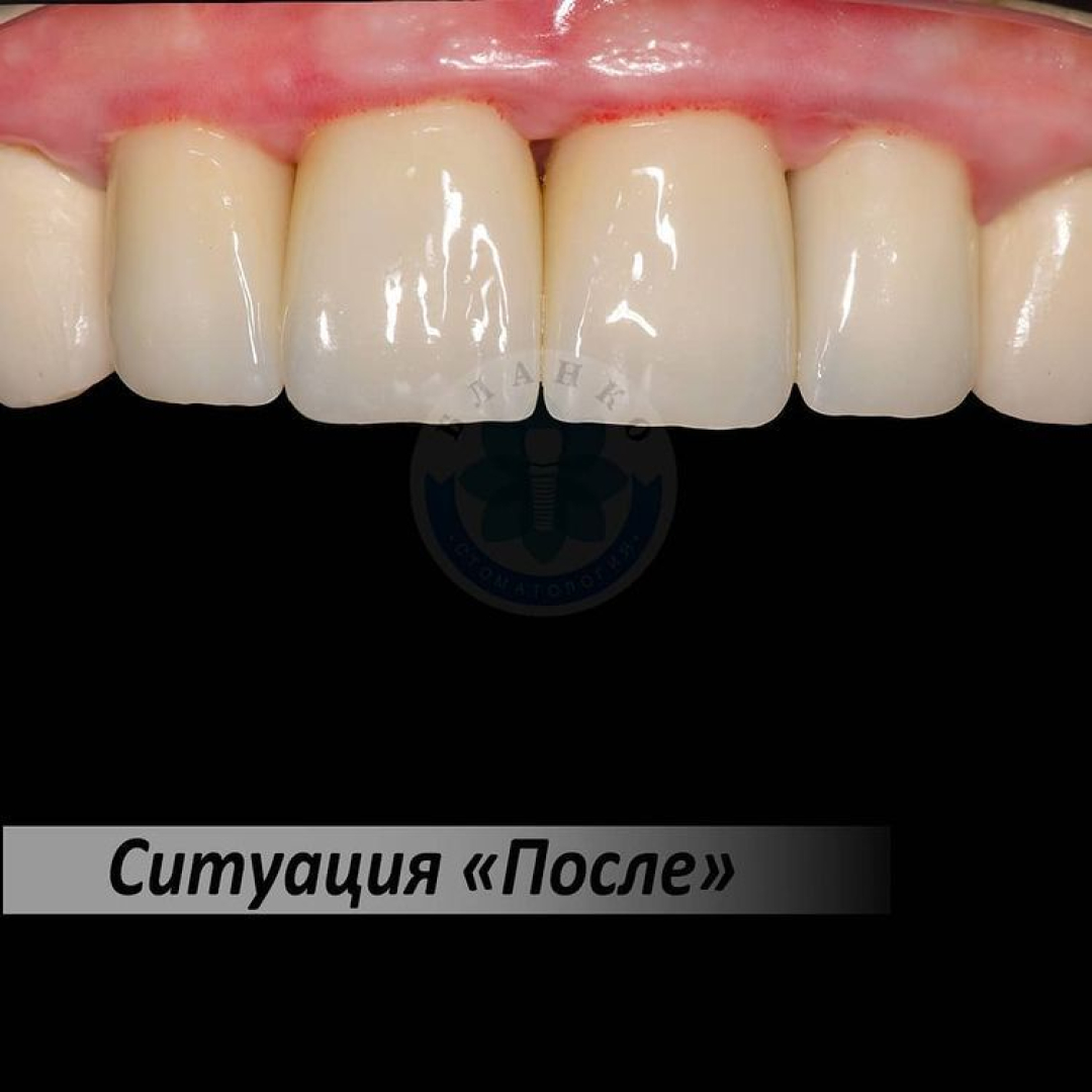 👨⚕️ Вид мягких тканей через месяц после начала лечения, во время фиксации новых коронок из оксида циркония.