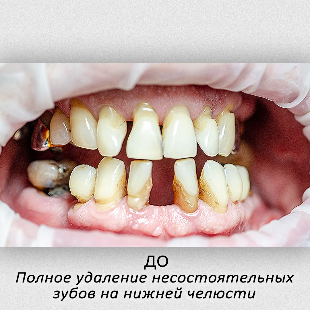 - До — агрессивный пародонтит III степени сложности; зубы не подлежат спасению;