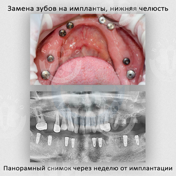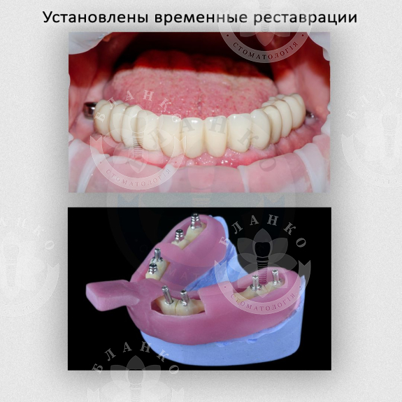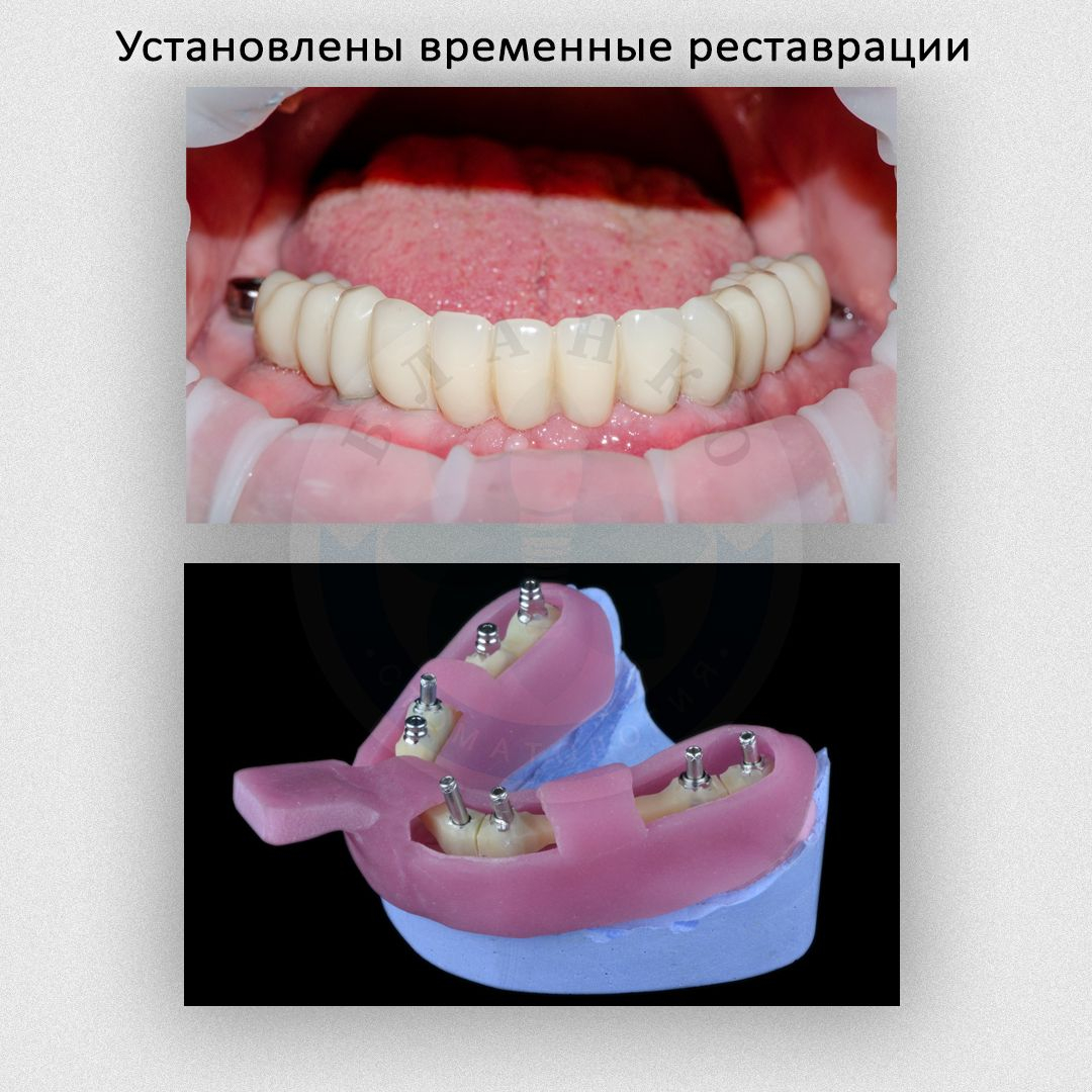 - Установлены временные ортопедические конструкции на период дезинтеграции ( приживления ) имплантов;