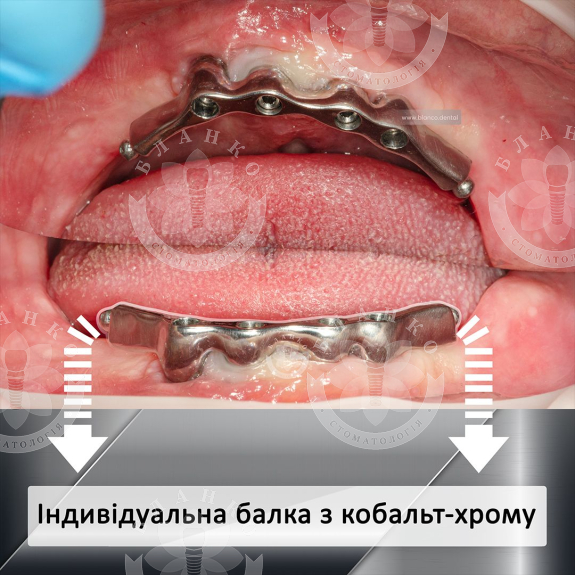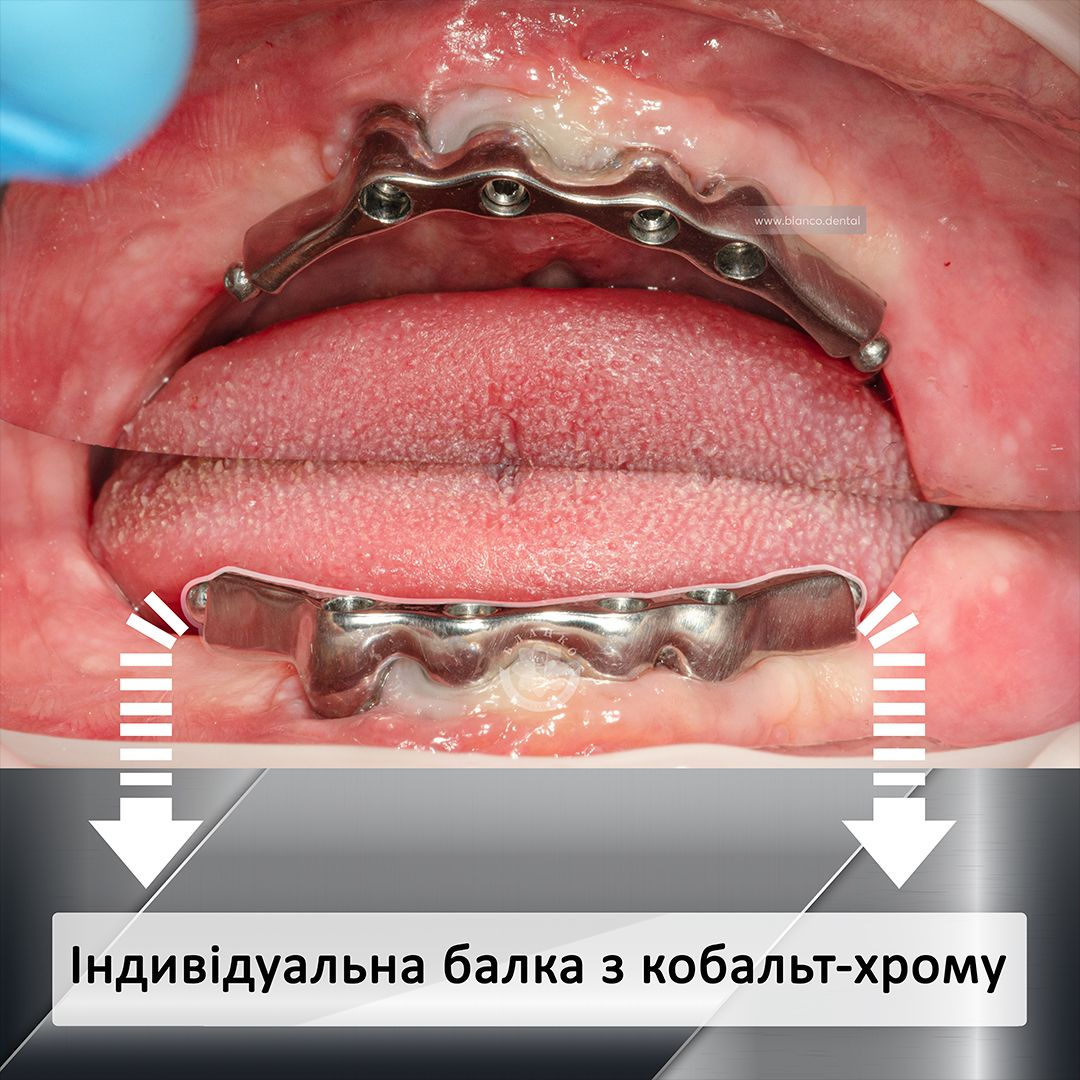 Имплантация при полном отсутствии зубов / протез на индивидуальной балке из кобальт-хрома