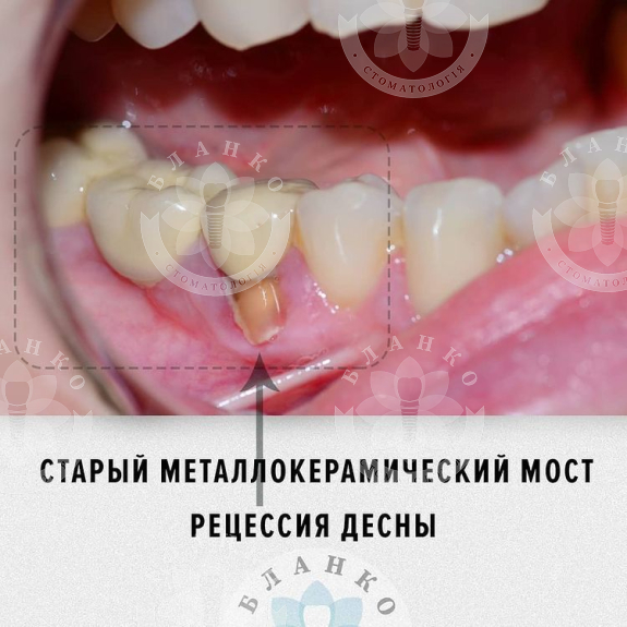 💎У пацієнтки стоїть старий металокерамічний міст на три зуби.