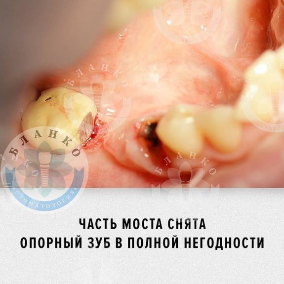💎Через те, що якість виготовлення мостоподібного протезу низька (ми робимо набагато краще),опорні зуби зіпсувалися (фото №3).